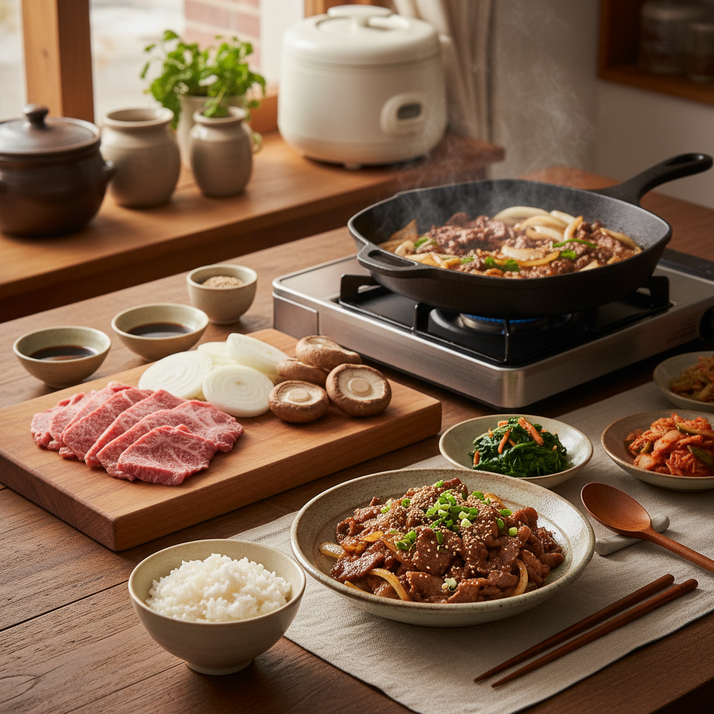 간장불고기은 재료를 많이 넣는 것보다 2~3인분 기준으로 양과 순서를 분명하게 맞추는 편이 훨씬 안정적이었습니다. 이 글은 약 25분, 난이도는 누구나 따라 하기 쉬움 기준으로 적었고, 집에 계량컵이나 중량계가 없어도 따라 할 수 있도록 종이컵과 밥숟가락 기준으로 정리했습니다.